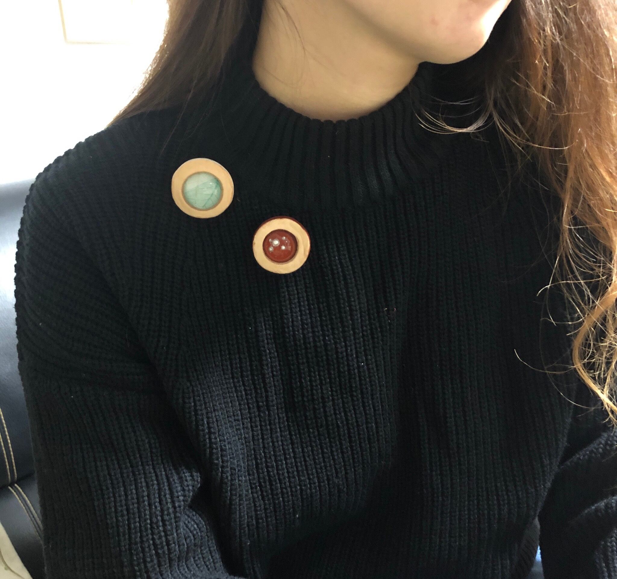 真ん中には、札幌の景観色と樹脂を使いパールビーズを閉じ込めました。