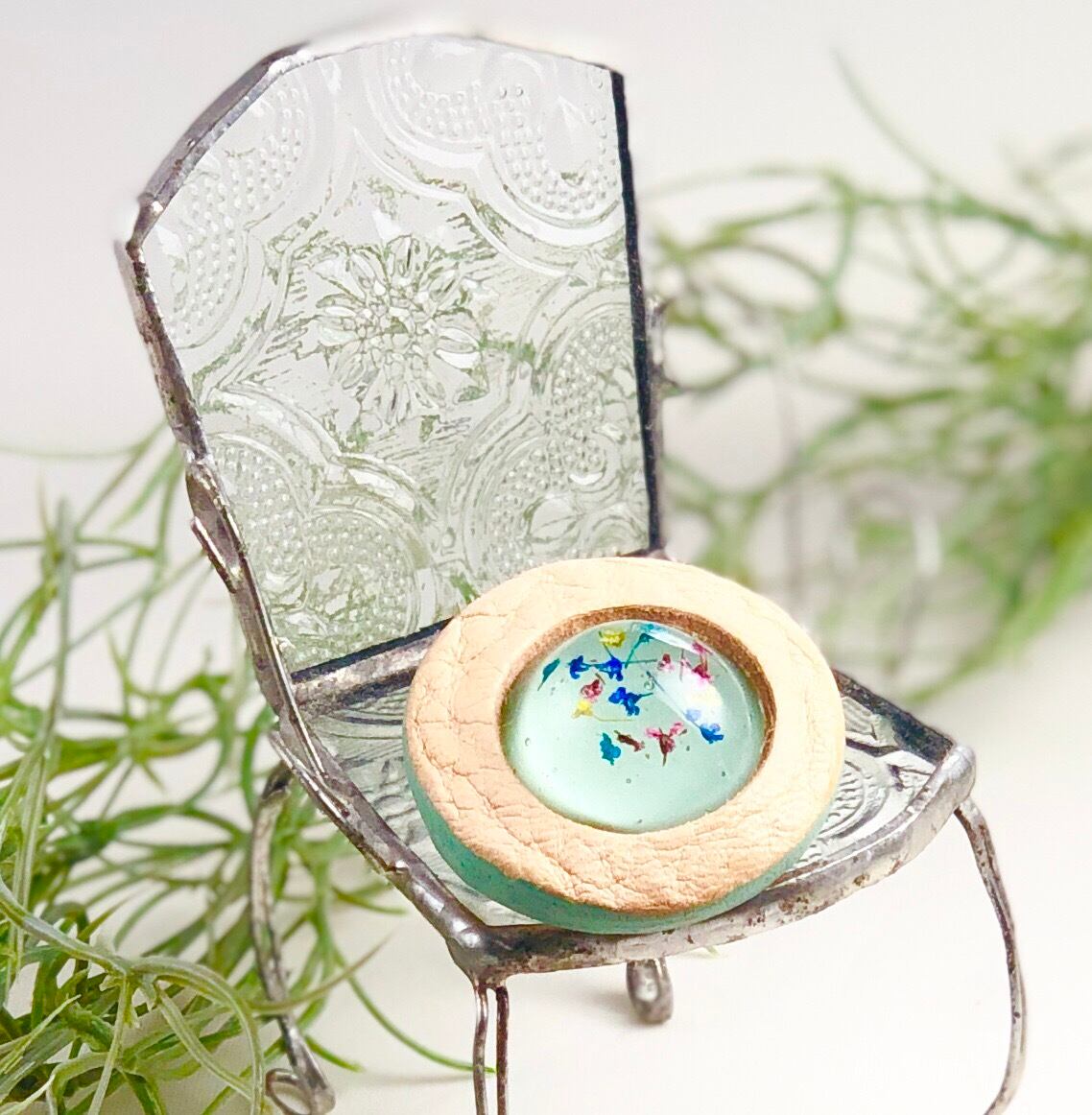 真ん中には、札幌の景観色と樹脂に小花を閉じ込めました。