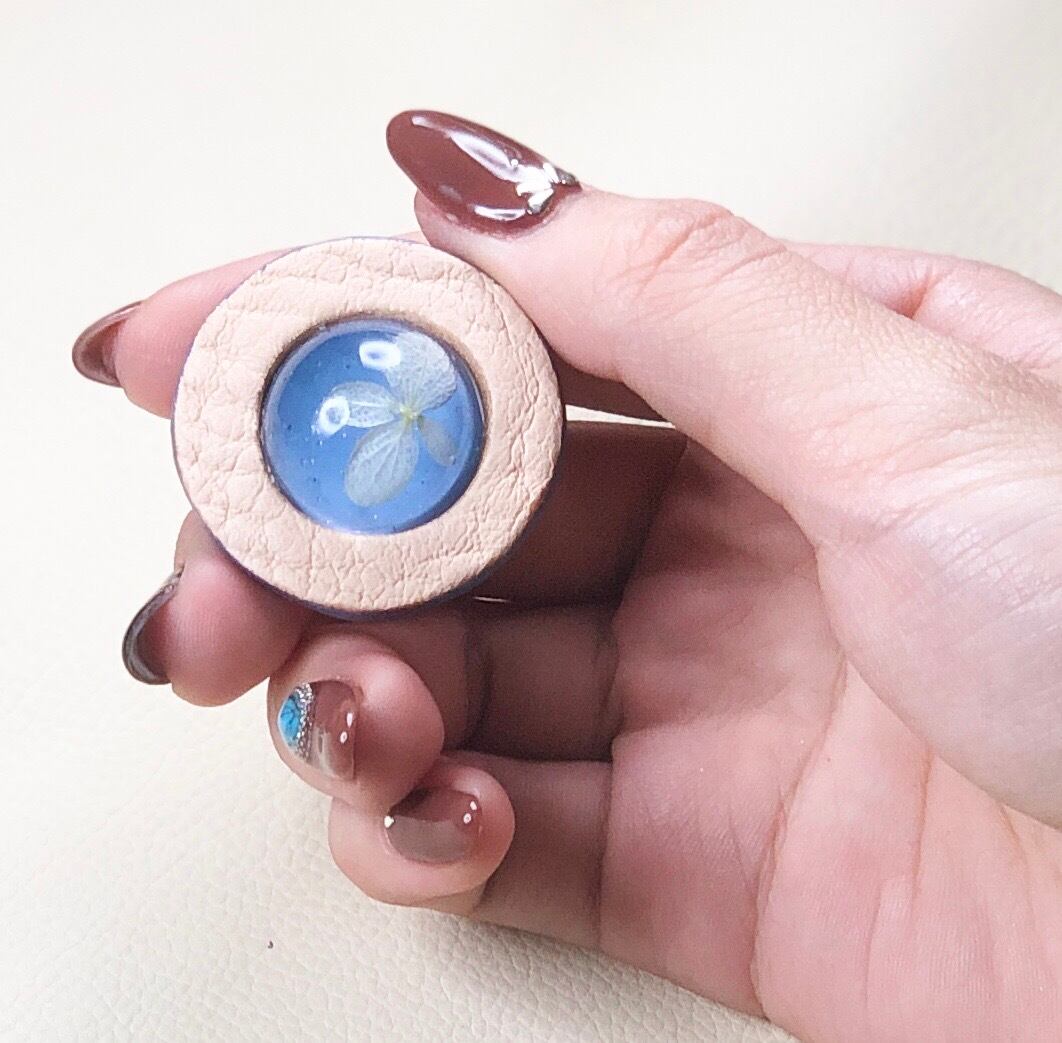 真ん中には、札幌の景観色と樹脂にアジサイを閉じ込めました。