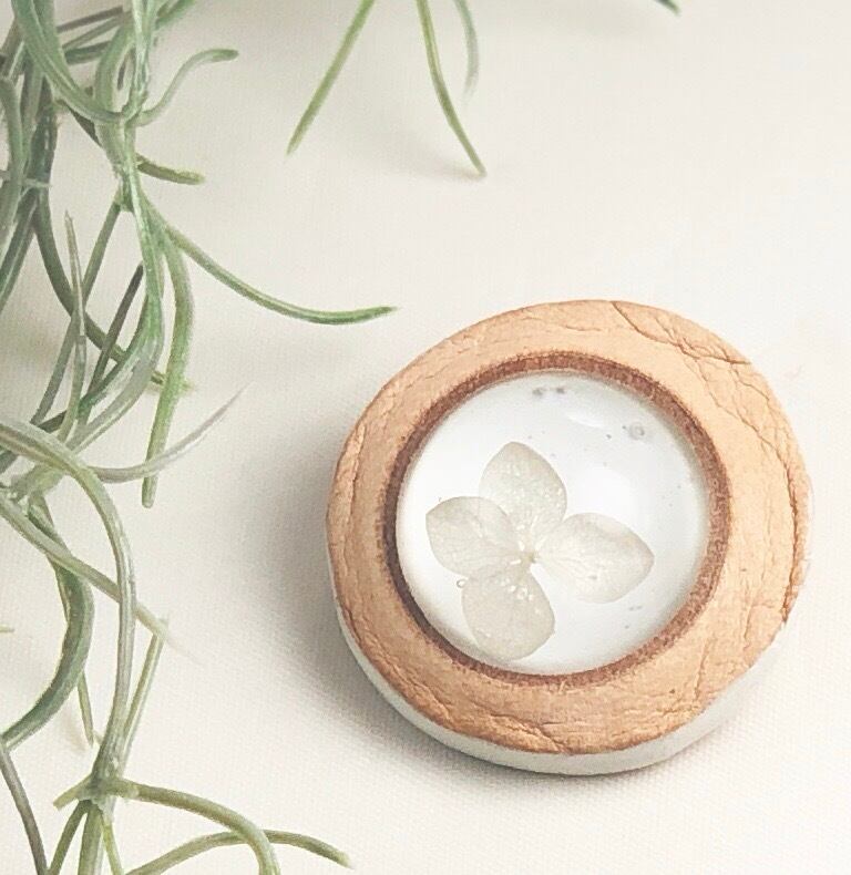 真ん中には、札幌の景観色と樹脂にアジサイを閉じ込めました。