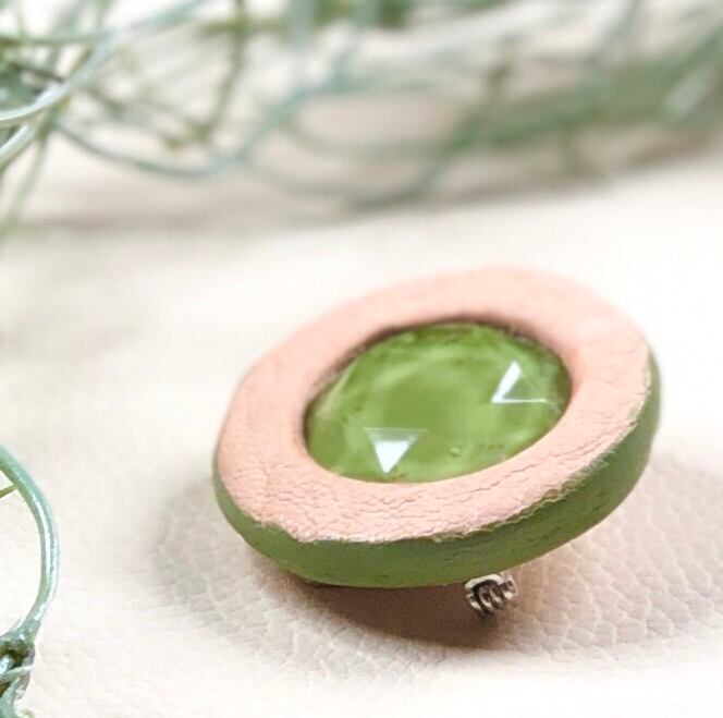 札幌景観色を使った、樹脂・染めエゾシカの革のアクセサリー