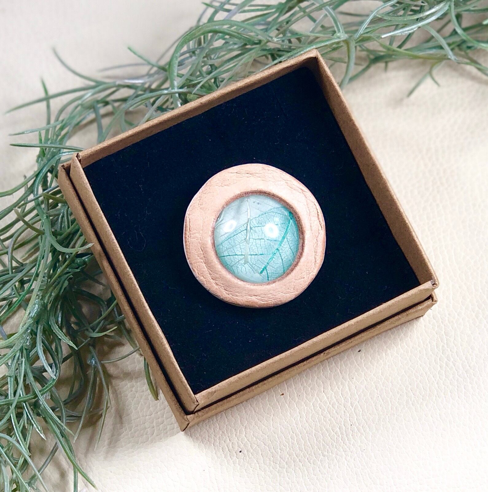 真ん中には、札幌の景観色と樹脂にスケルトンリーフを閉じ込めました。
